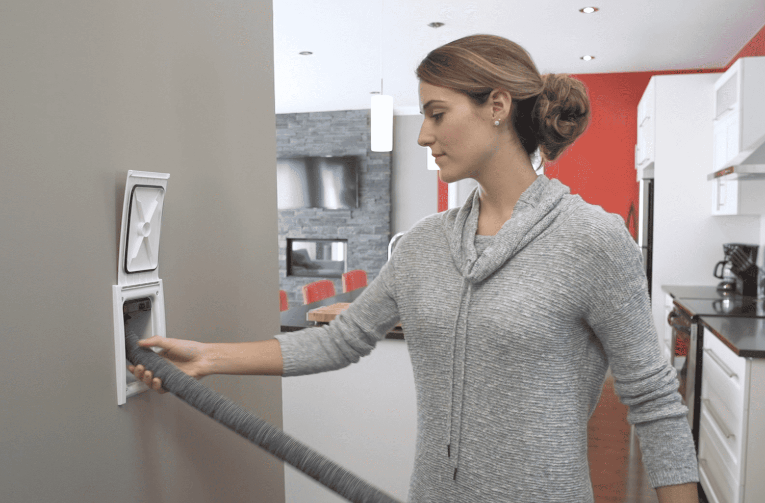 - Le flexible se range tout seul à l’intérieur du réseau, grâce à la simple force d’aspiration de votre centrale.