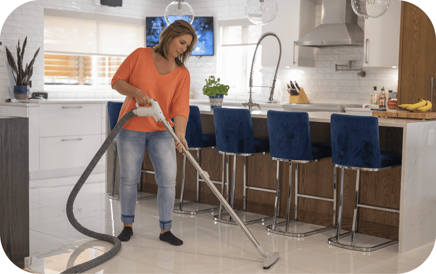 - Votre aspirateur est à portée de main avec un flexible derrière chaque prise.